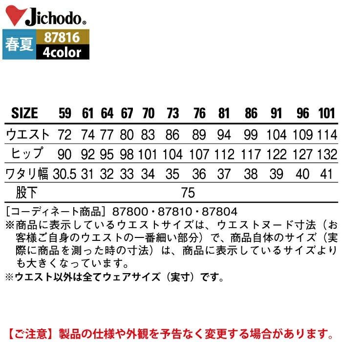 自重堂 作業服 作業着 作業ズボン 自重堂 作業服 87816 エコ製品制電ストレッチレディースカーゴパンツ 81-101 春夏用 作業着