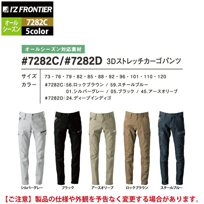 アイズフロンティア 作業服 作業ズボン 7282C 3Dストレッチカーゴパンツ 73-120 オールシーズン