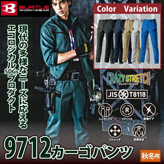 バートル BURTLE 作業着 作業ズボン 2024秋冬新作 9712 カーゴパンツ 3L 作業服 おしゃれ JIS適合制電