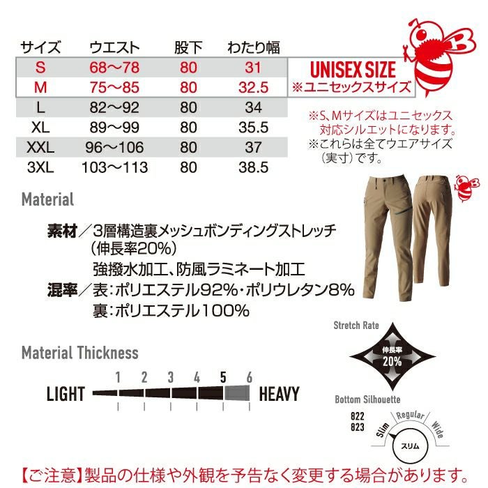 ユニセックス ストレッチ バートル BURTLE 作業着 作業ズボン 2024秋冬新作 822 カーゴパンツ 3XL 作業服 おしゃれ 撥水 防風 保温