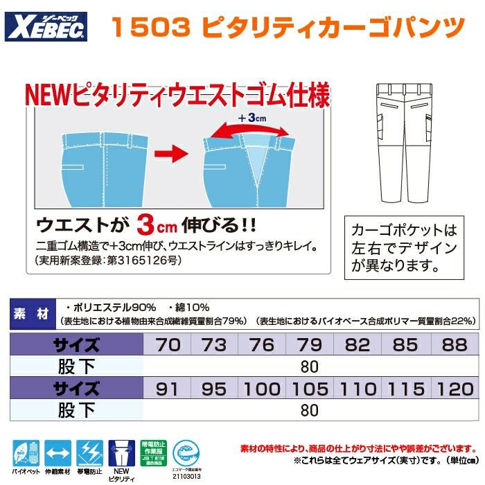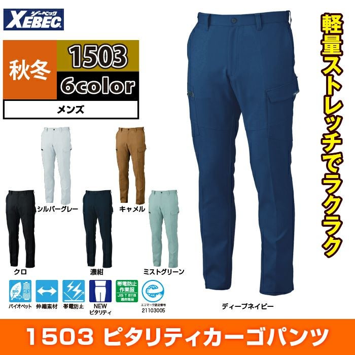 ジーベック XEBEC 作業服 作業ズボン 1503 ピタリティカーゴパンツ 70-100 秋冬 作業着