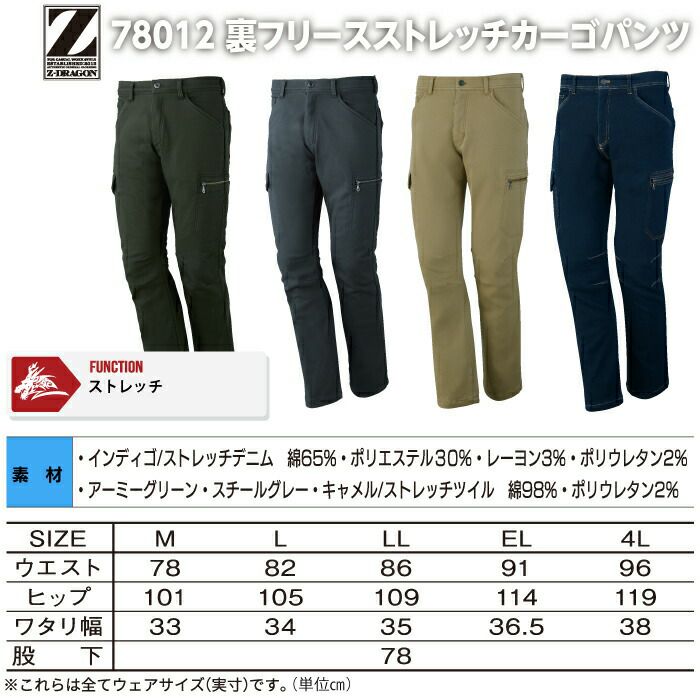 自重堂 Z-DRAGON 作業服 作業着 作業ズボン 自重堂 Z-DRAGON 作業服 78012 裏フリースストレッチカーゴパンツ EL 秋冬用 作業着