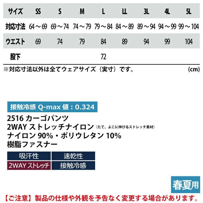 ジーベック XEBEC 作業服 作業着 作業ズボン ジーベック XEBEC 作業服 春夏用 2516 カーゴパンツ SS-LL 作業着