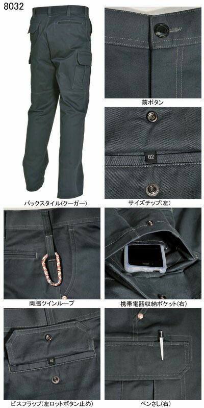 綿100%のシリーズ 作業服 秋冬用 バートル BURTLE 作業着 作業ズボン 8032 カーゴパンツ W110