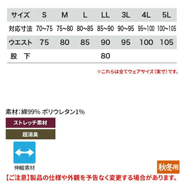 自重堂 JAWIN ジャウィン 作業服 作業着 自重堂 JAWIN ジャウィン 作業服 53002 ストレッチノータックカーゴパンツ 91-112 秋冬用 作業着