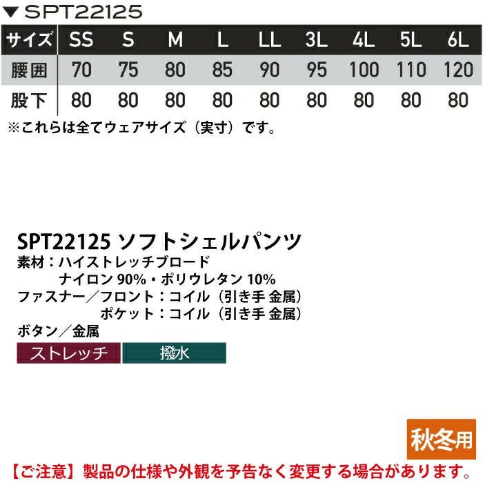 サンエス 作業服 作業着 作業ズボン サンエス 作業服 秋冬 SPT22125 ソフトシェルパンツ 4L-6L 作業着