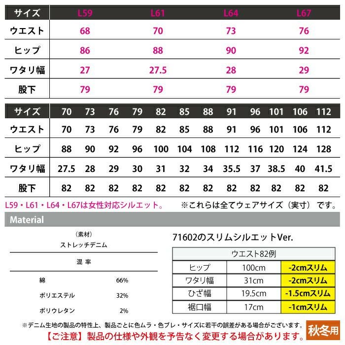 自重堂 作業服 作業着 作業ズボン 自重堂 作業服 71602S ストレッチノータックカーゴパンツ L59-88 秋冬用 作業着
