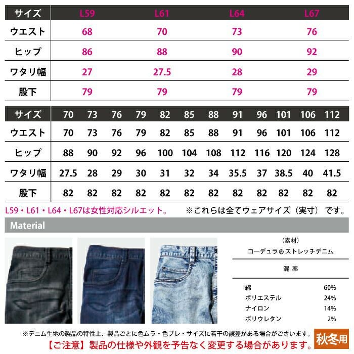 ジーベック XEBEC 作業服 作業着 作業ズボン ジーベック XEBEC 作業服 秋冬用 1745 レディスラットズボン 17号-19号 作業着