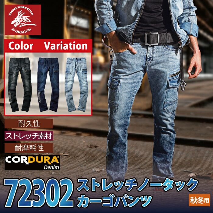 自重堂 Z-DRAGON 作業服 作業着 作業ズボン 自重堂 Z-DRAGON 作業服 72302 ストレッチノータックカーゴパンツ 91-112 秋冬用 作業着