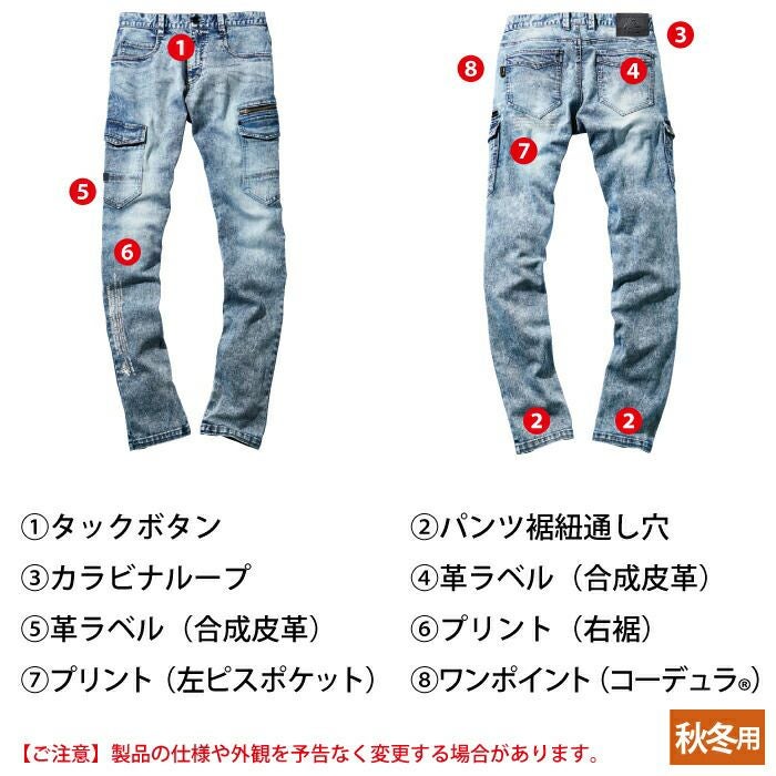 綿100%のシリーズ 作業服 秋冬用 バートル BURTLE 作業着 作業ズボン 8032 カーゴパンツ W73-W88