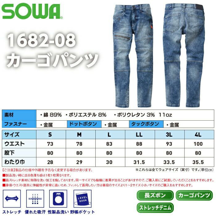 桑和 SOWA 作業服 作業着 作業ズボン 桑和 SOWA 作業服 秋冬用 1682-08 カーゴパンツ 3L