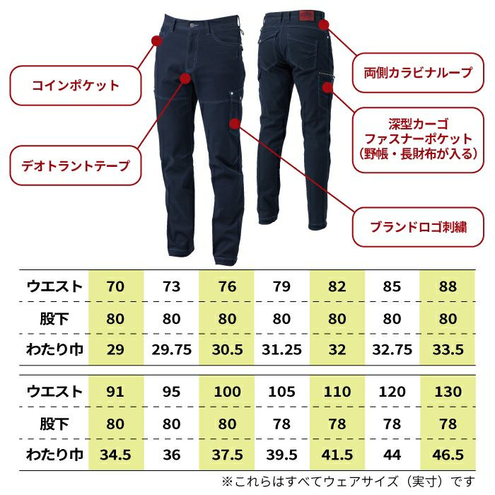 桑和 SOWA 作業服 5042-08 カーゴパンツ 105-110 作業服 秋冬用
