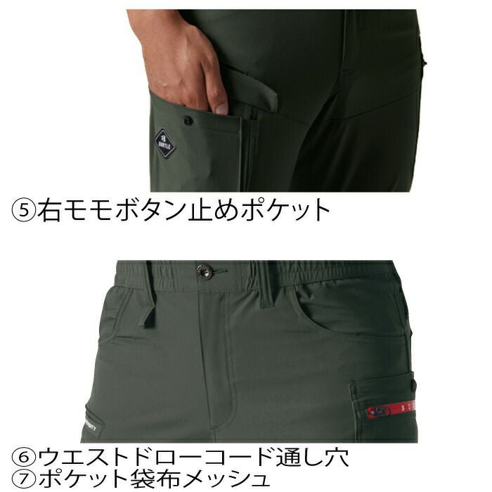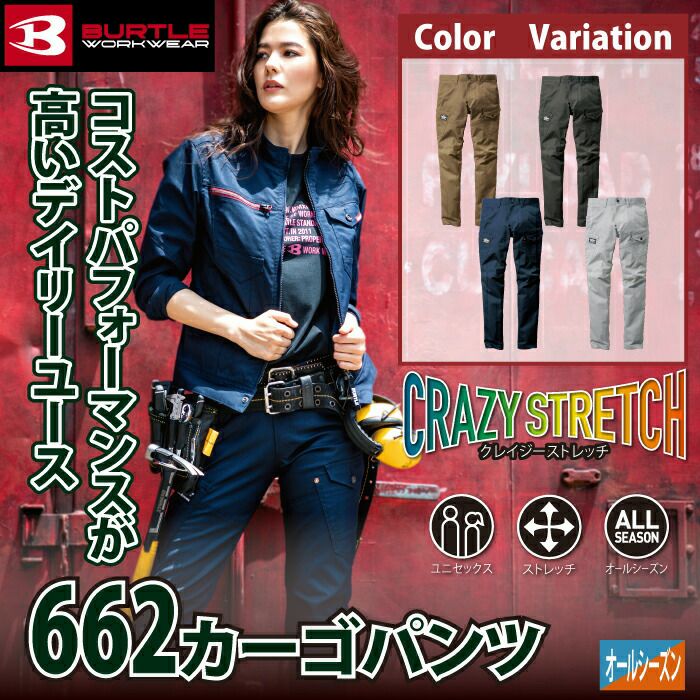 程よくスリムなテーパードシルエット バートル BURTLE 作業着 作業ズボン 662 カーゴパンツ 6L-7L 作業服 おしゃれ 春夏 秋冬 ストレッチ ツイル 661対応 ズボン