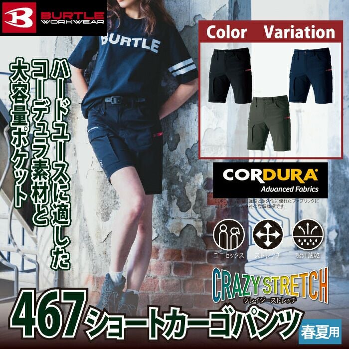 ユニセックス UV ストレッチ バートル BURTLE 作業着 作業ズボン 467 ショートカーゴパンツ S-XL 作業服 おしゃれ ドライ