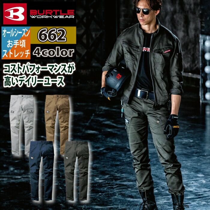 程よくスリムなテーパードシルエット バートル BURTLE 作業着 作業ズボン 662 カーゴパンツ 4L-5L 作業服 おしゃれ 春夏 秋冬 ストレッチ ツイル 661対応 ズボン