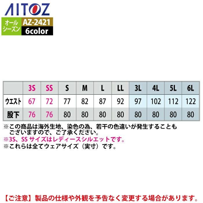 アイトス Aitoz 作業服 作業着 作業ズボン アイトス 作業服 作業着 Aitoz AZ-2421 カーゴパンツ(ノータック)(男女兼用) 5L
