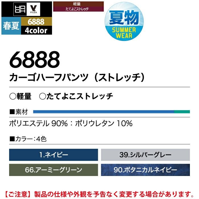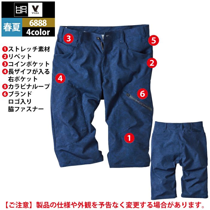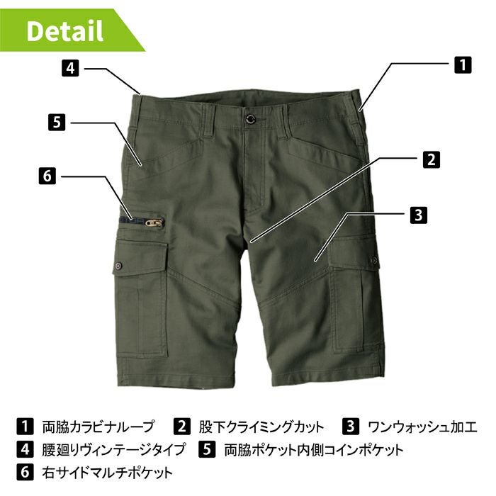 作業服 作業着 村上被服 HOOH 鳳凰 作業服 作業ズボン 6888 カーゴハーフパンツ(ストレッチ) SS-3L
