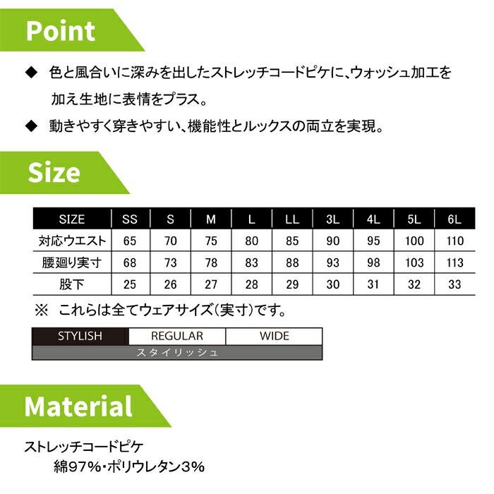 コーコス 作業服 作業着 作業ズボン コーコス 作業服 オールシーズン GA-3916 ストレッチコードピケショートカーゴ SS-LL