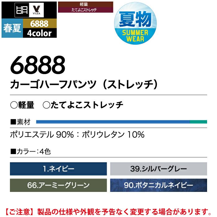 作業服 作業着 村上被服 HOOH 鳳凰 作業服 作業ズボン 6888 カーゴハーフパンツ(ストレッチ) 6L