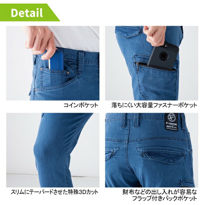 イーブンリバー 作業服 作業着 作業ズボン イーブンリバー EVENRIVER 作業服 作業ズボン ERX602 ヘビーエクストリームストレッチデニムカーゴ 100 秋冬用 作業着 おしゃれ