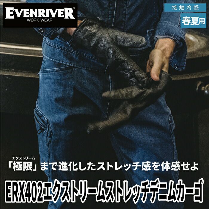 イーブンリバー 作業服 作業着 作業ズボン イーブンリバー EVENRIVER 作業服 作業ズボン ERX402 エクストリームストレッチデニムカーゴ 73-95 春夏用 作業着 おしゃれ