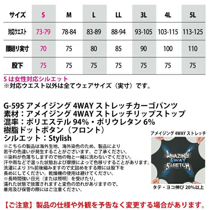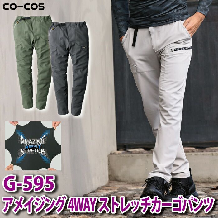 コーコス 作業服 作業着 作業ズボン コーコス 作業服 春夏用 G-595 アメイジング4WAYストレッチカーゴパンツ S-LL