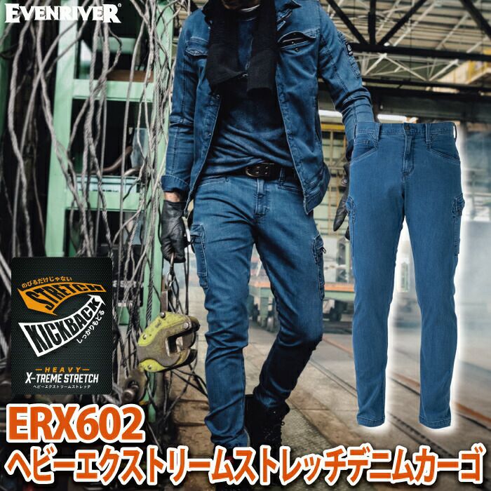 イーブンリバー 作業服 作業着 作業ズボン イーブンリバー EVENRIVER 作業服 作業ズボン ERX602 ヘビーエクストリームストレッチデニムカーゴ 115 秋冬用 作業着 おしゃれ