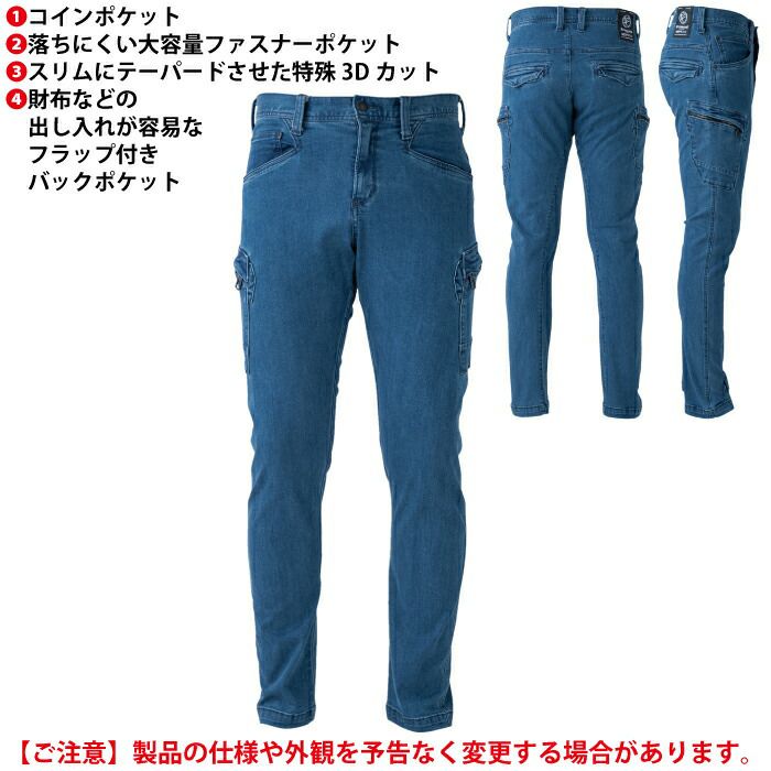 アイズフロンティア 作業服 作業着 作業ズボン アイズフロンティア 作業服 作業ズボン 7012 3Dストレッチデニムカーゴパンツ 73-101 9オンス ライダース 春夏秋冬