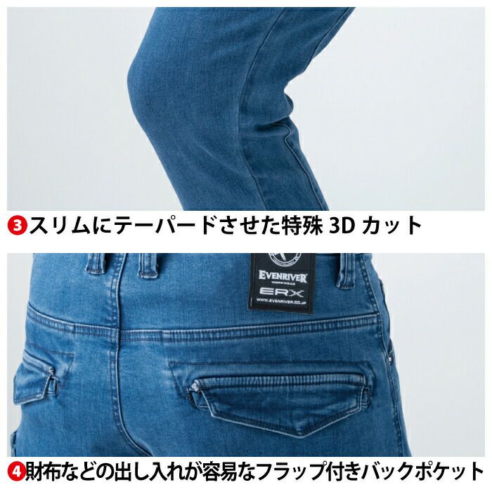 イーブンリバー 作業服 作業着 作業ズボン イーブンリバー EVENRIVER 作業服 作業ズボン ERX402 エクストリームストレッチデニムカーゴ 105 春夏用 作業着 おしゃれ