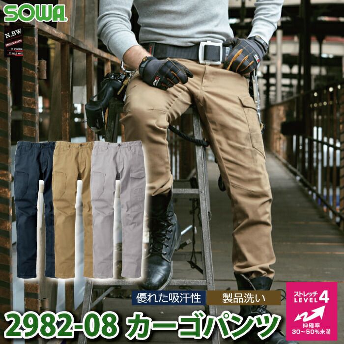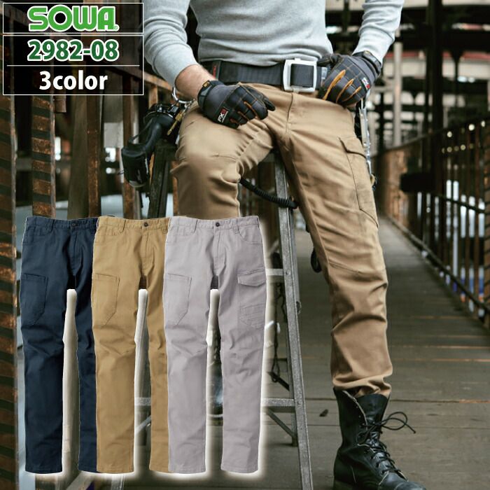 桑和 SOWA 作業服 作業着 作業ズボン 桑和 SOWA 作業服 オールシーズン 2982-08 カーゴパンツ 105-110