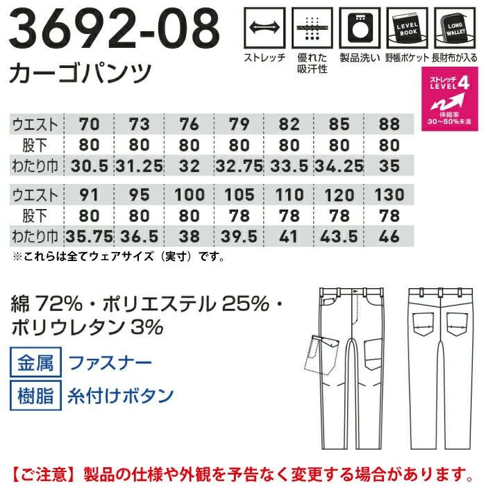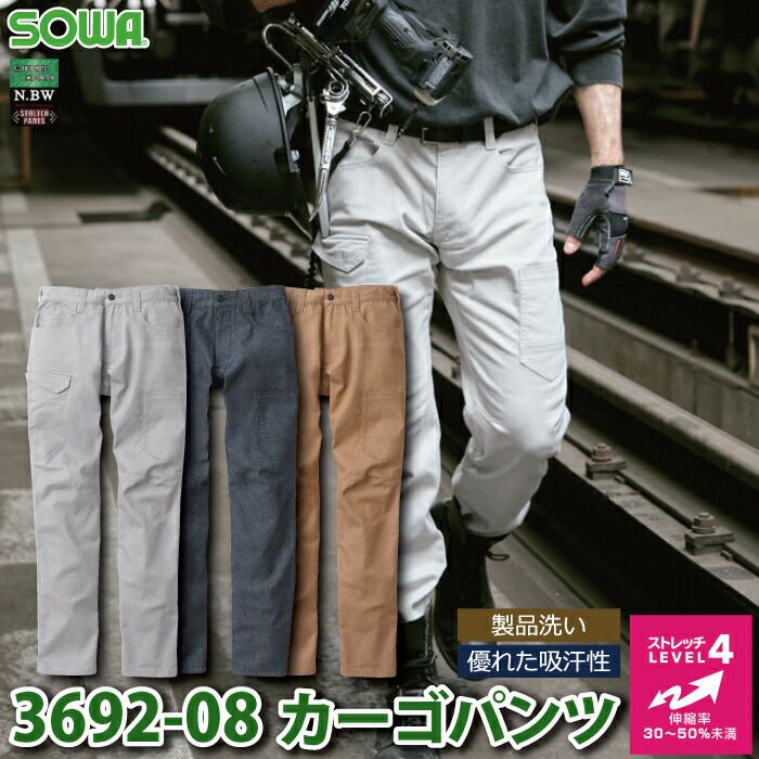 桑和 SOWA 作業服 作業着 作業ズボン 桑和 SOWA 作業服 オールシーズン 3692-08 カーゴパンツ 105-110