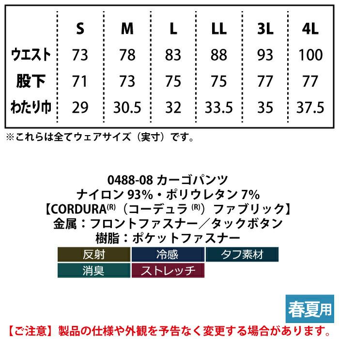 桑和 SOWA 作業服 作業着 作業ズボン 桑和 SOWA 作業服 春夏用 0488-08 カーゴパンツ S-LL
