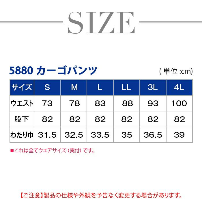 桑和 SOWA 作業服 作業着 作業ズボン 桑和 SOWA 作業服 5880 カーゴパンツ 4L 作業服 秋冬用