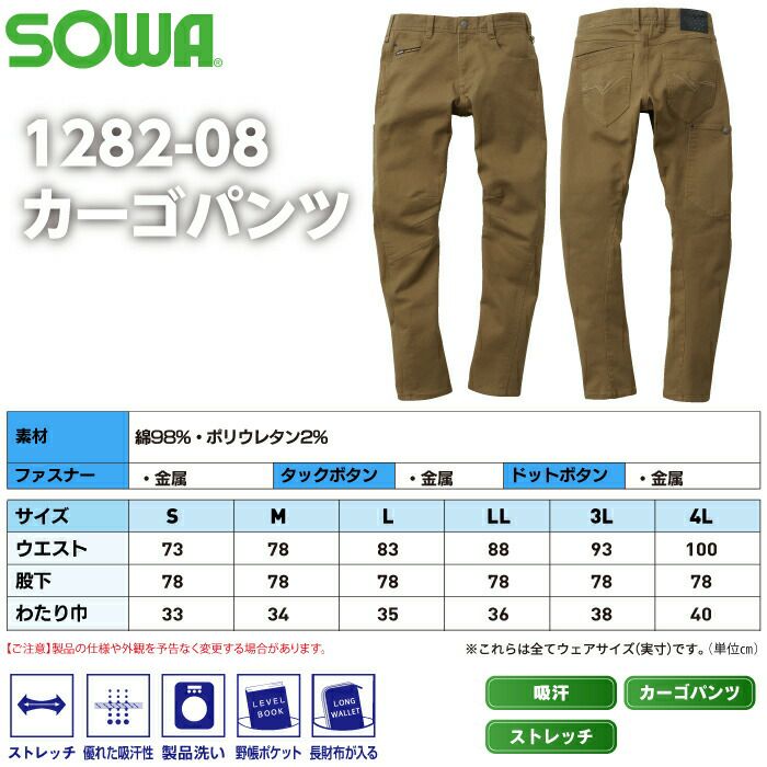 桑和 SOWA 作業服 作業着 作業ズボン 桑和 SOWA 作業服 秋冬用 1282-08 カーゴパンツ S-LL