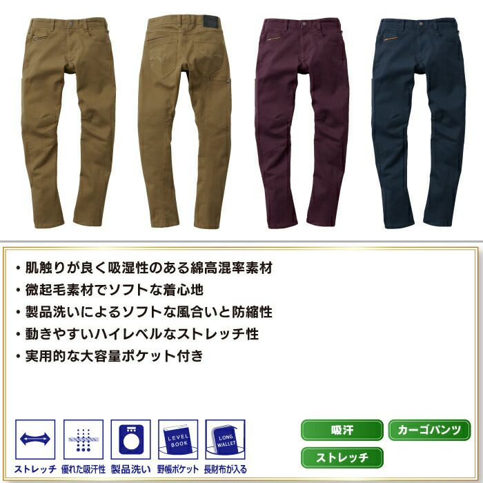 アイズフロンティア 作業服 作業着 作業ズボン アイズフロンティア 作業服 作業ズボン 7892 製品染めコットンストレッチカーゴパンツ SS-5L かっこいい おしゃれ 秋冬用