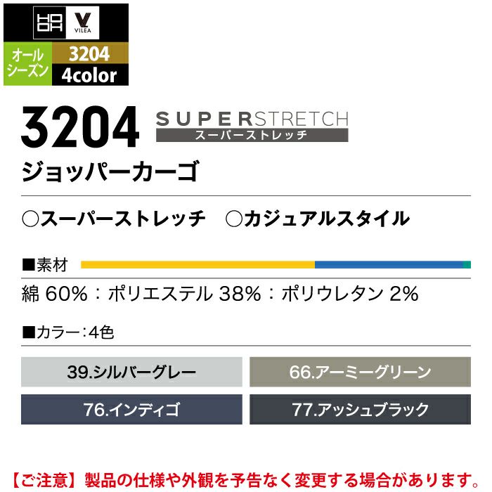 村上被服 HOOH 鳳凰 作業服 作業着 村上被服 HOOH 鳳凰 作業服 3204 ジョッパーカーゴ 4L-5L
