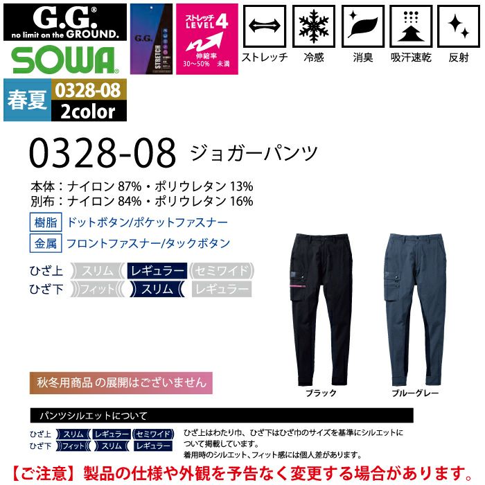 桑和 SOWA 作業服 作業着 作業ズボン 桑和 SOWA 作業服 春夏用 0328-08 ジョガーパンツ S-LL