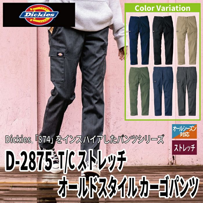 ディッキーズ Dickies 作業服 作業着 作業ズボン ディッキーズ Dickies 作業服 作業着 作業ズボン オールシーズン D-2875 T/Cストレッチオールドスタイルカーゴパンツ SS-6L