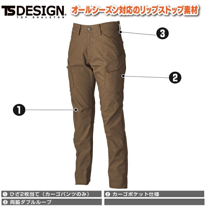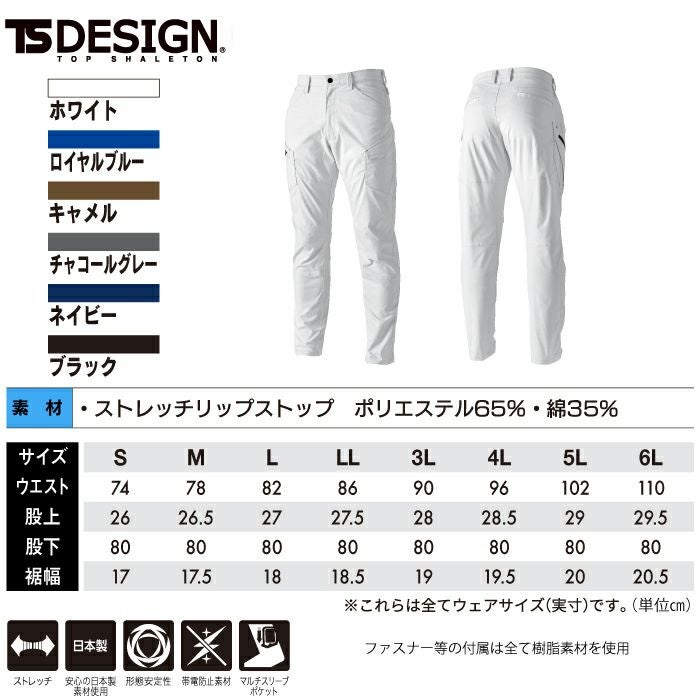 藤和 TSDESIGN 作業服 作業着 作業ズボン 藤和 TSDESIGN 作業服 オールシーズン 6414 ESストレッチRIPSTOPメンズカーゴパンツ S-LL