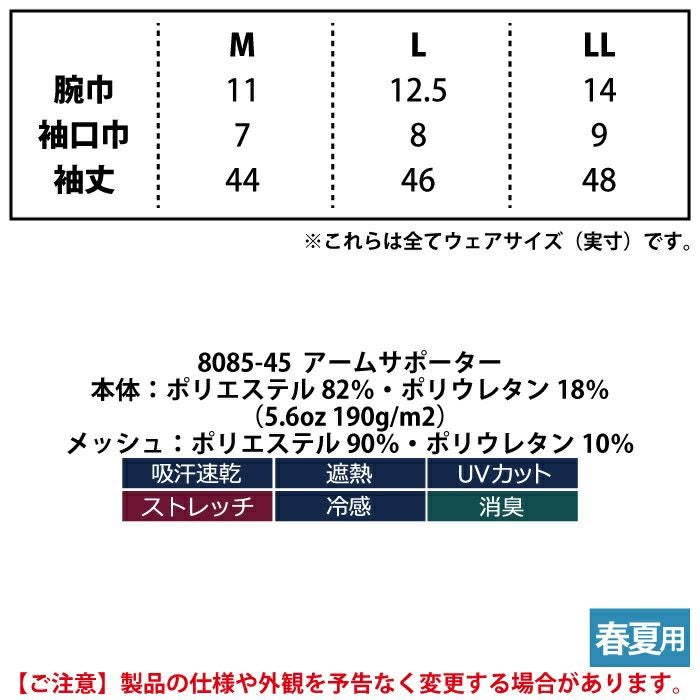 桑和 SOWA 作業服 作業着 作業ズボン 桑和 SOWA 作業服 8085-45 アームサポーター M-LL 作業用品 春夏用