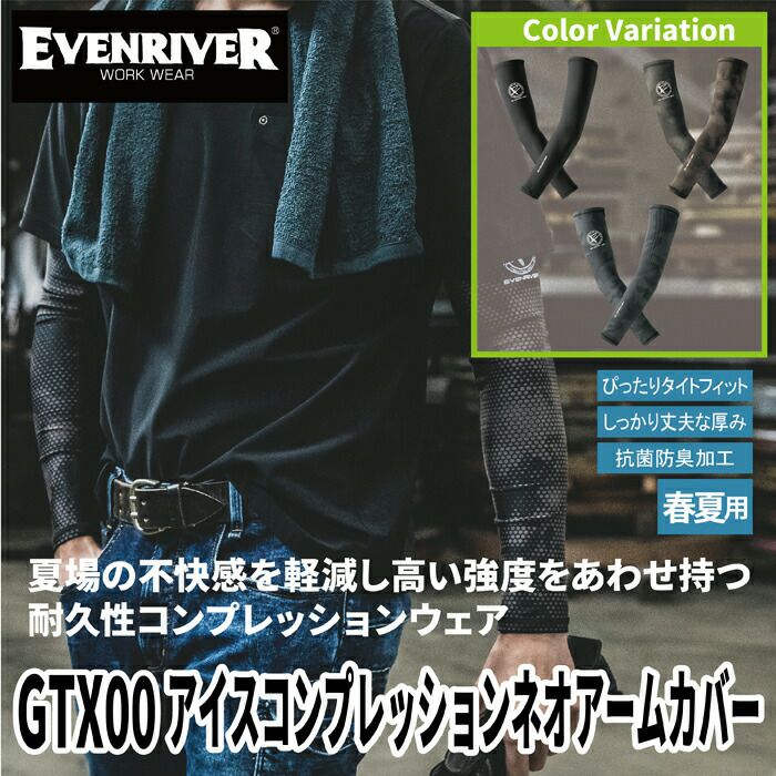 イーブンリバー 作業服 作業着 作業ズボン イーブンリバー EVENRIVER 作業服 インナー GTX00 アイスコンプレッションネオアームカバー M-LL 作業用品 春夏 作業着 おしゃれ