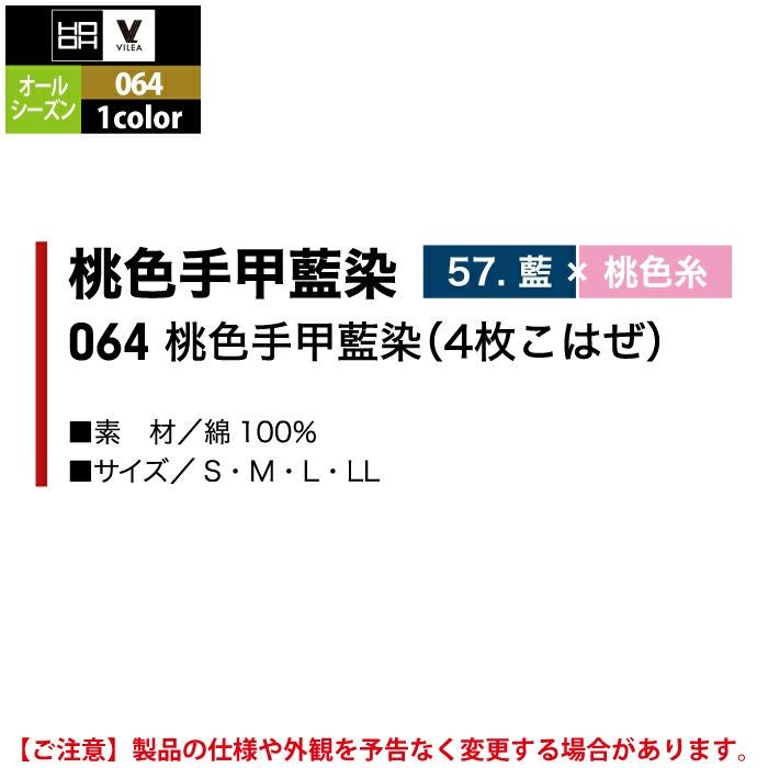 村上被服 HOOH 鳳凰 作業服 作業着 村上被服 HOOH 鳳凰 作業服 作業用品 064 桃色手甲藍染(4枚こはぜ) S-LL