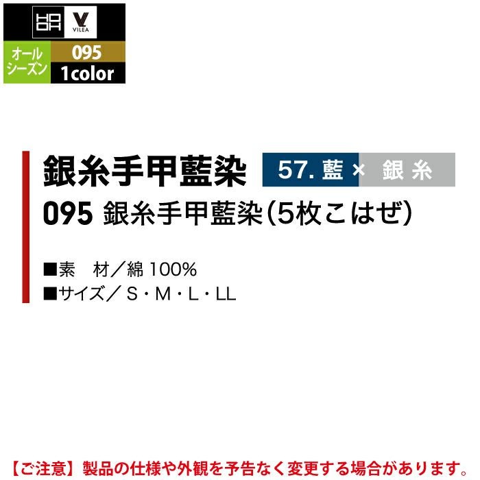 村上被服 HOOH 鳳凰 作業服 作業着 村上被服 HOOH 鳳凰 作業服 作業用品 095 銀糸手甲藍染(5枚こはぜ) S-LL