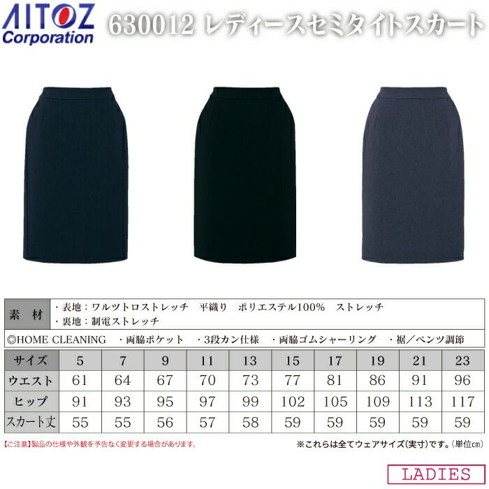 アイトス Aitoz オフィスウェア アイトス オフィスウェア Aitoz 630012 レディースセミタイトスカート 5号-15号