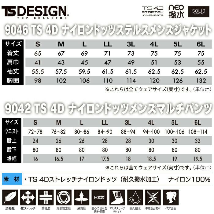 藤和 TSDESIGN 作業服 作業着 作業ズボン 藤和 TSDESIGN 作業服 上下セット 9046 4DナイロンドッツステルスメンズジャケットS-3L と 9042 4DナイロンドッツメンズマルチパンツS-3L 春夏用