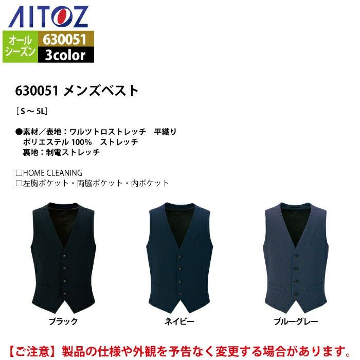 アイトス Aitoz オフィスウェア アイトス オフィスウェア Aitoz 630051 メンズベスト S-LL