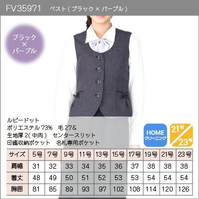 事務服 制服 ベスト レディース オフィス ヌーヴォ FV36063 ベスト 21号-23号 (事務服・制服・オフィスウェア)