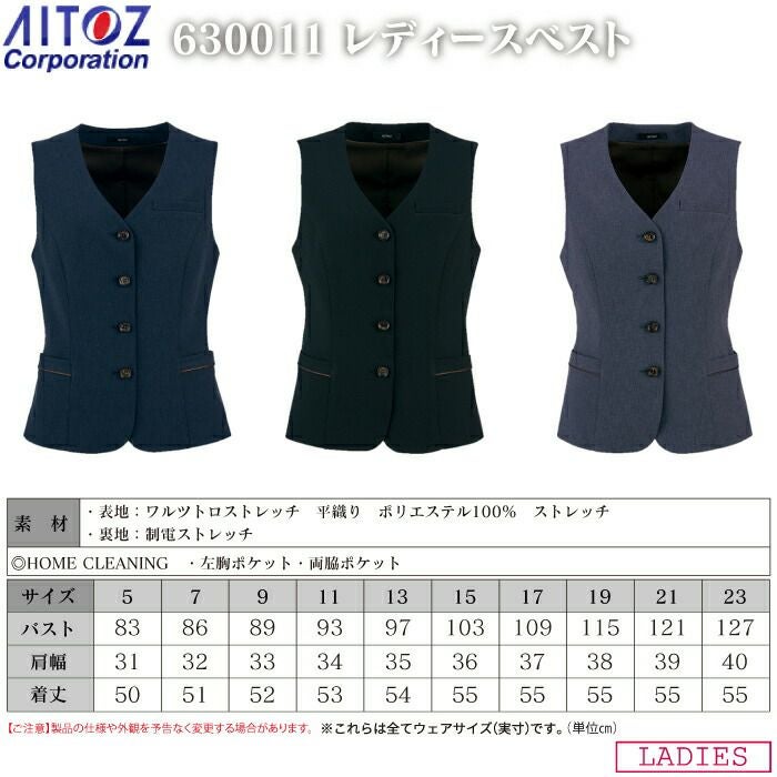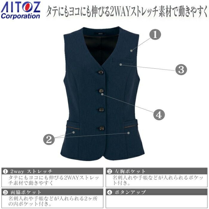 アイトス Aitoz オフィスウェア アイトス オフィスウェア Aitoz 630011 レディースベスト 5号-15号