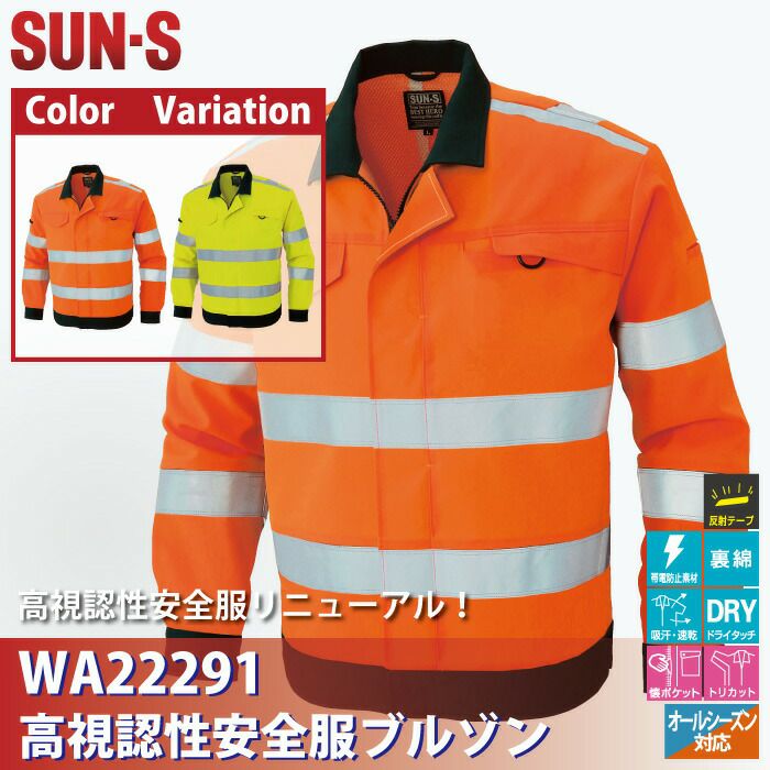 サンエス 作業服 作業着 作業ズボン 警備服・防犯商品 サンエス 作業服 オールシーズン WA22291 高視認性安全服ブルゾン S-6L 作業着