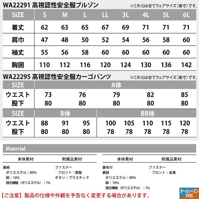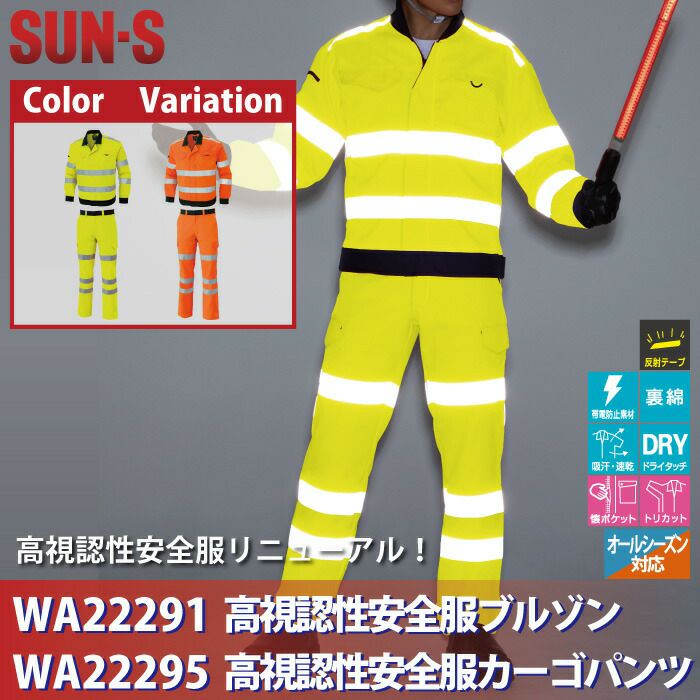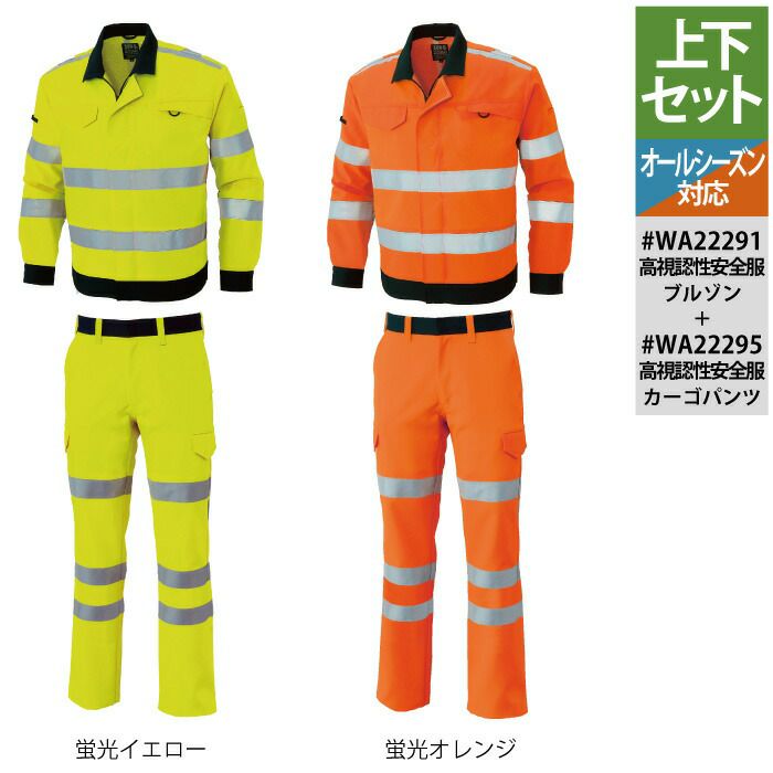 サンエス 作業服 作業着 作業ズボン 警備服・防犯商品 サンエス 作業服 上下セット オールシーズン WA22291 高視認性安全服ブルゾンS-3L と WA22295 カーゴパンツ 73-100 作業ズボン 作業着